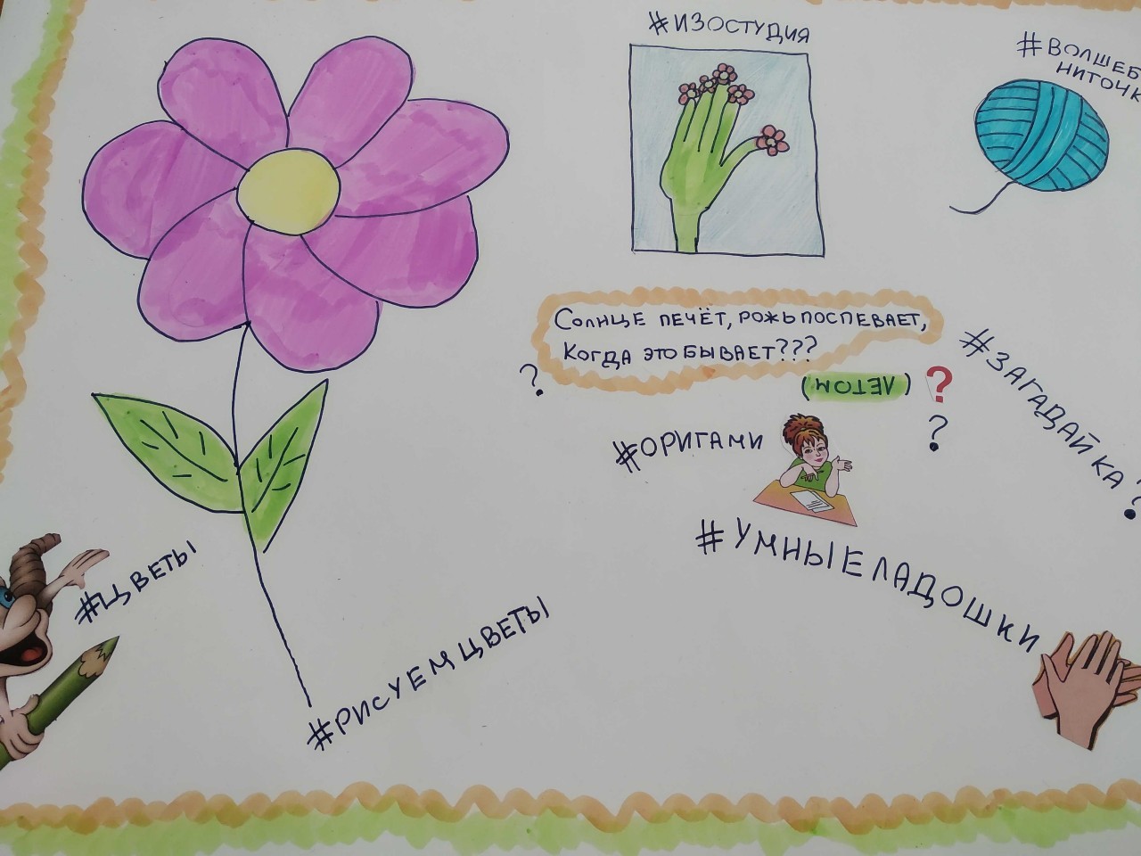 В этот день каждый отряд придумал свою волшебную, удивительно красивую клумбу и изобразил ее на ватмане.