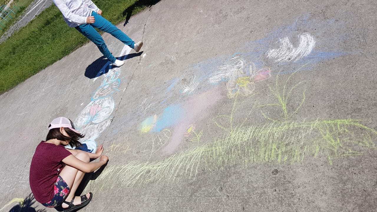 Ребята проявили свое творчество в рисунках на асфальте. С удовольствием посмотрели мультфильм в ДК.